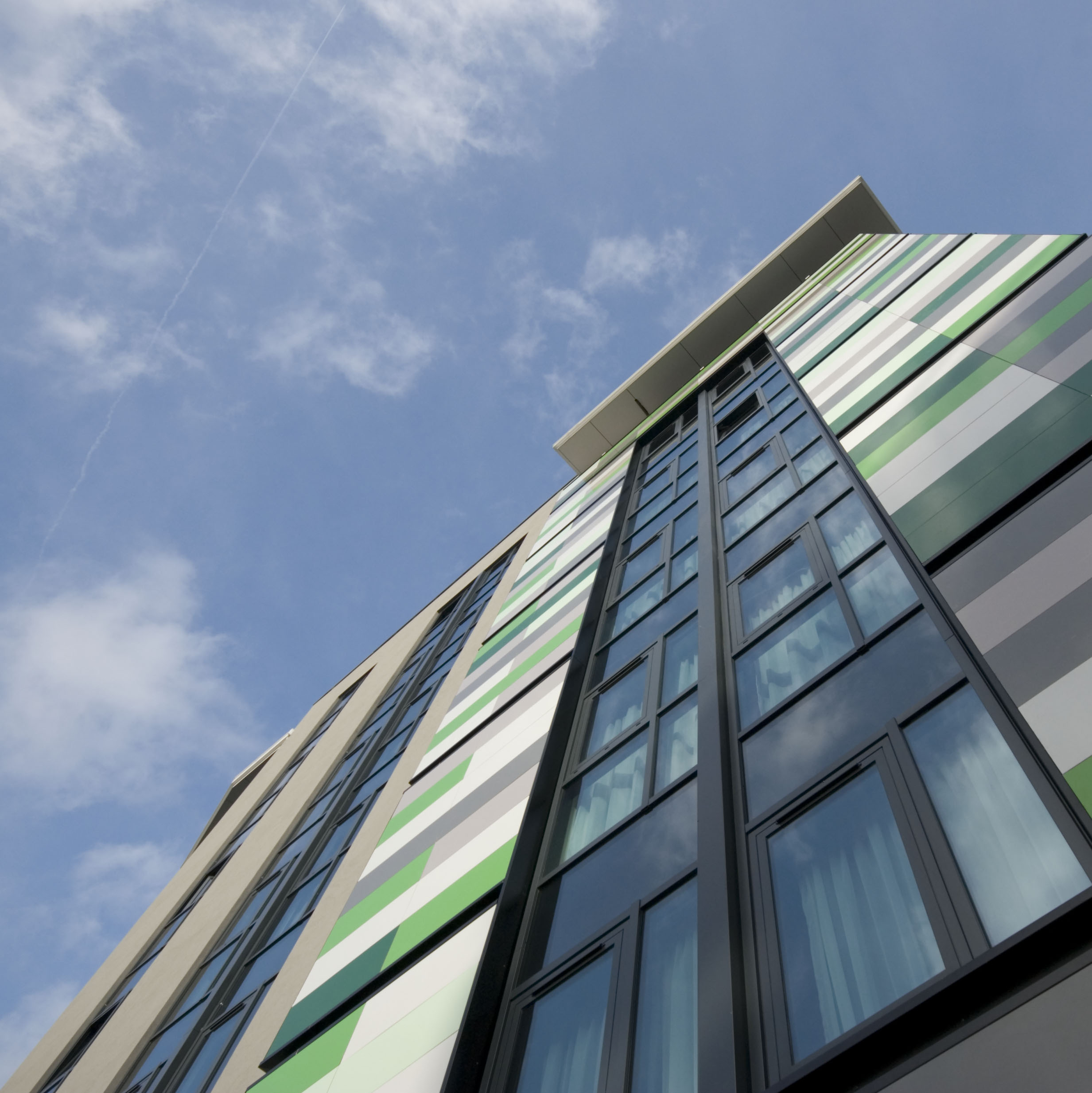 La gestion logistique de cet habillage extérieur complexe a été très soigneusement planifiée, d’autant qu’outre les différentes couleurs, il a fallu 521 tailles de panneaux différentes pour créer le motif souhaité. Carea, leader des revêtements de façade, a relevé le défi de la production, tandis qu’ECL Contracts mettait son expertise technique et son expérience de la gestion de projet au service de la vision de l’architecte.