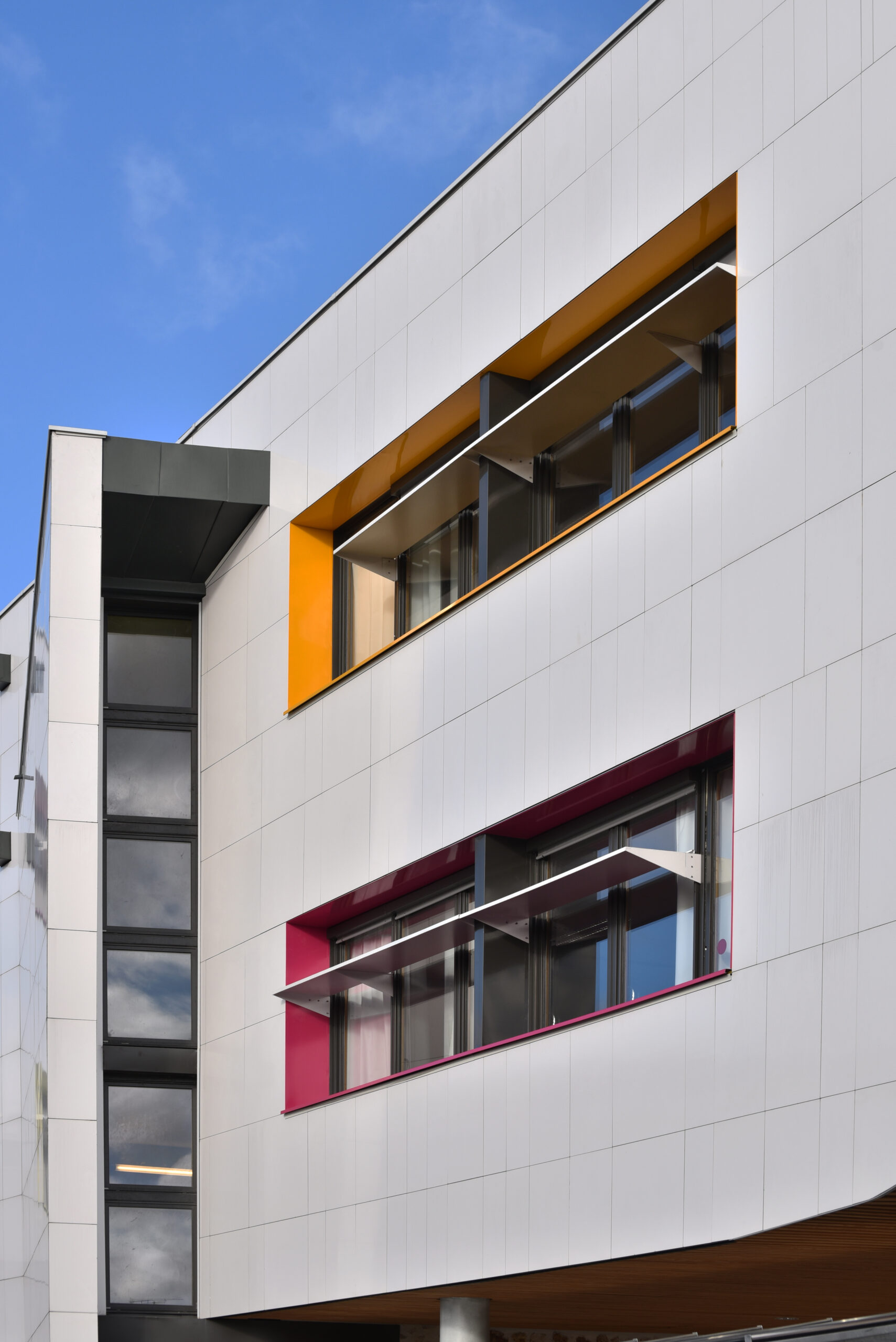 Deux types de fixations ont été employés : les parements CAREA Rainuré ont été utilisés pour les parties planes de la façade, tandis que les parements CAREA Insert ont permis de traiter les courbes de la façade (dalles cintrées standards ou sur-mesure).