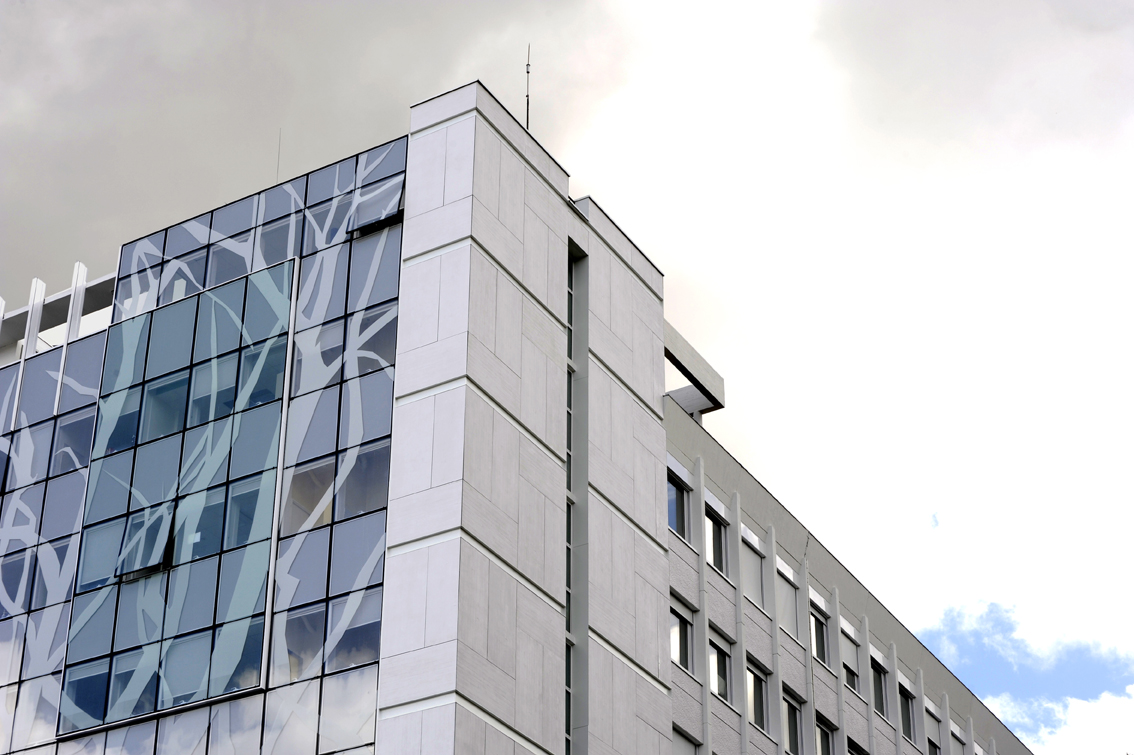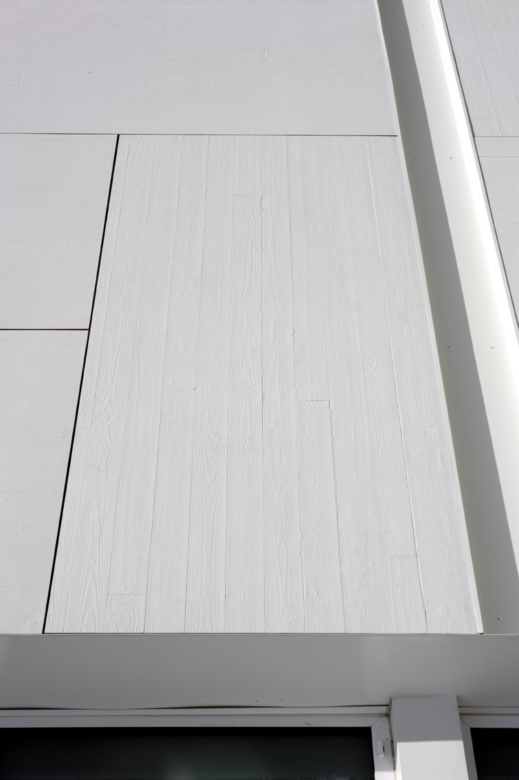 L’aspect « EMPREINTE BOIS », désormais proposé au catalogue CAREA, a été créé sur mesure pour ce chantier : afin de reproduire l’aspect de surface de l’édifice original, l’aspect reprend l’empreinte du clin bois qui avait servi au coffrage de la précédente façade béton.