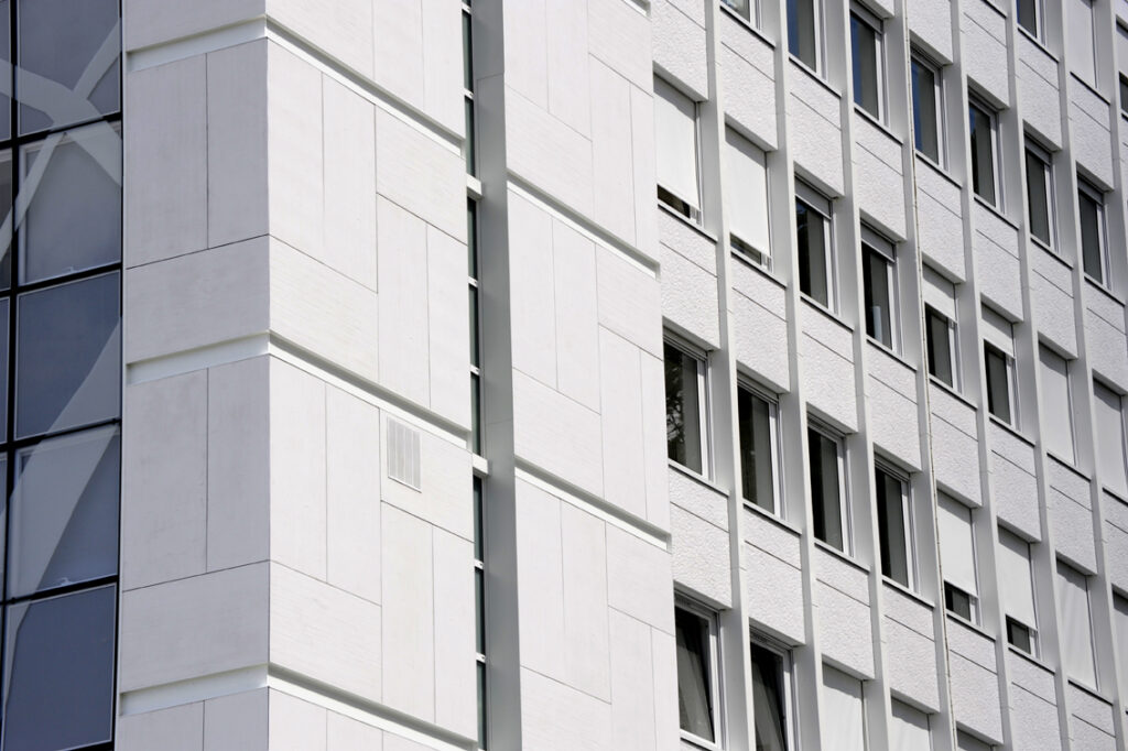 Dans le cadre de cette réhabilitation, le système de bardage avec ossature CAREA® (BAO) a été mis en œuvre pour l’ITE (Isolation Thermique par l’Extérieur) du bâtiment. Le bardage a été posé sur mur béton, avec un isolant semi-rigide.