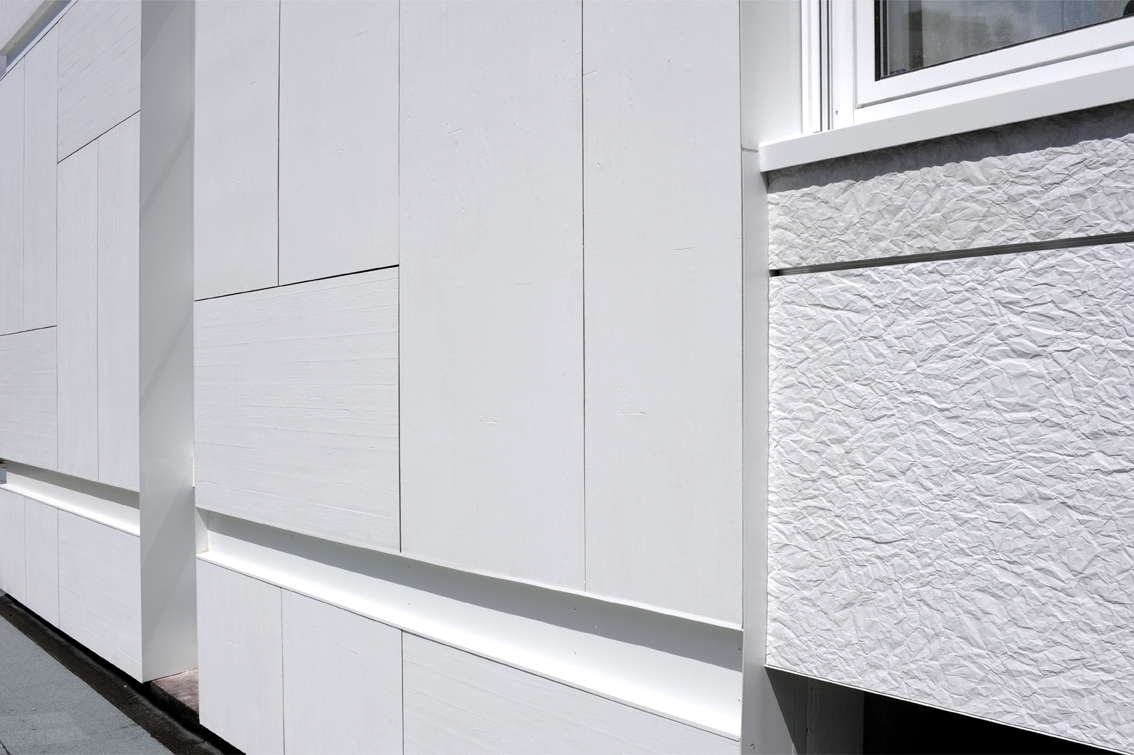 Les allèges ont quant à elles été réalisées avec l’aspect PAPYRUS (papier froissé), donnant de la matière et du relief à cette façade organique.