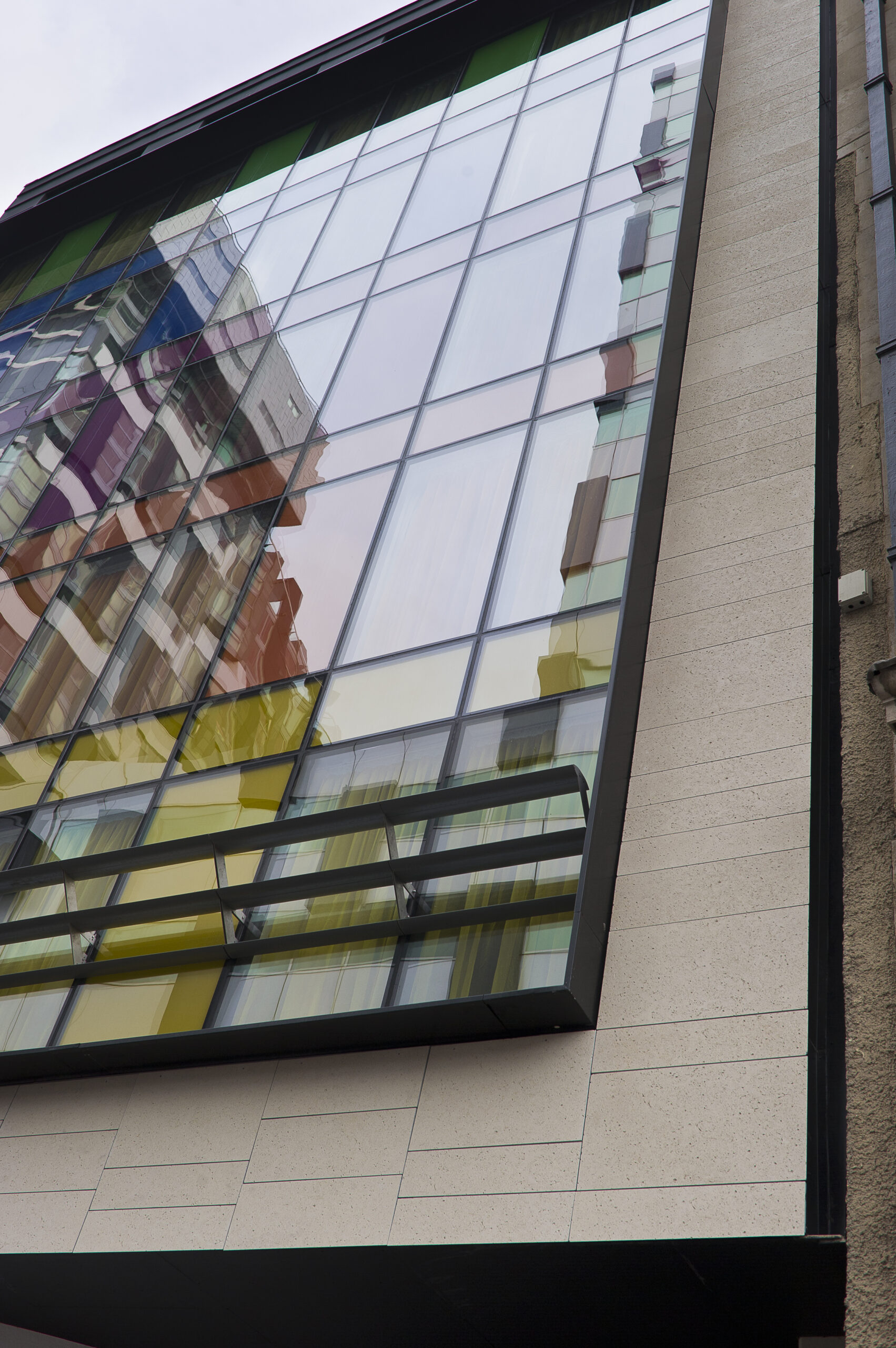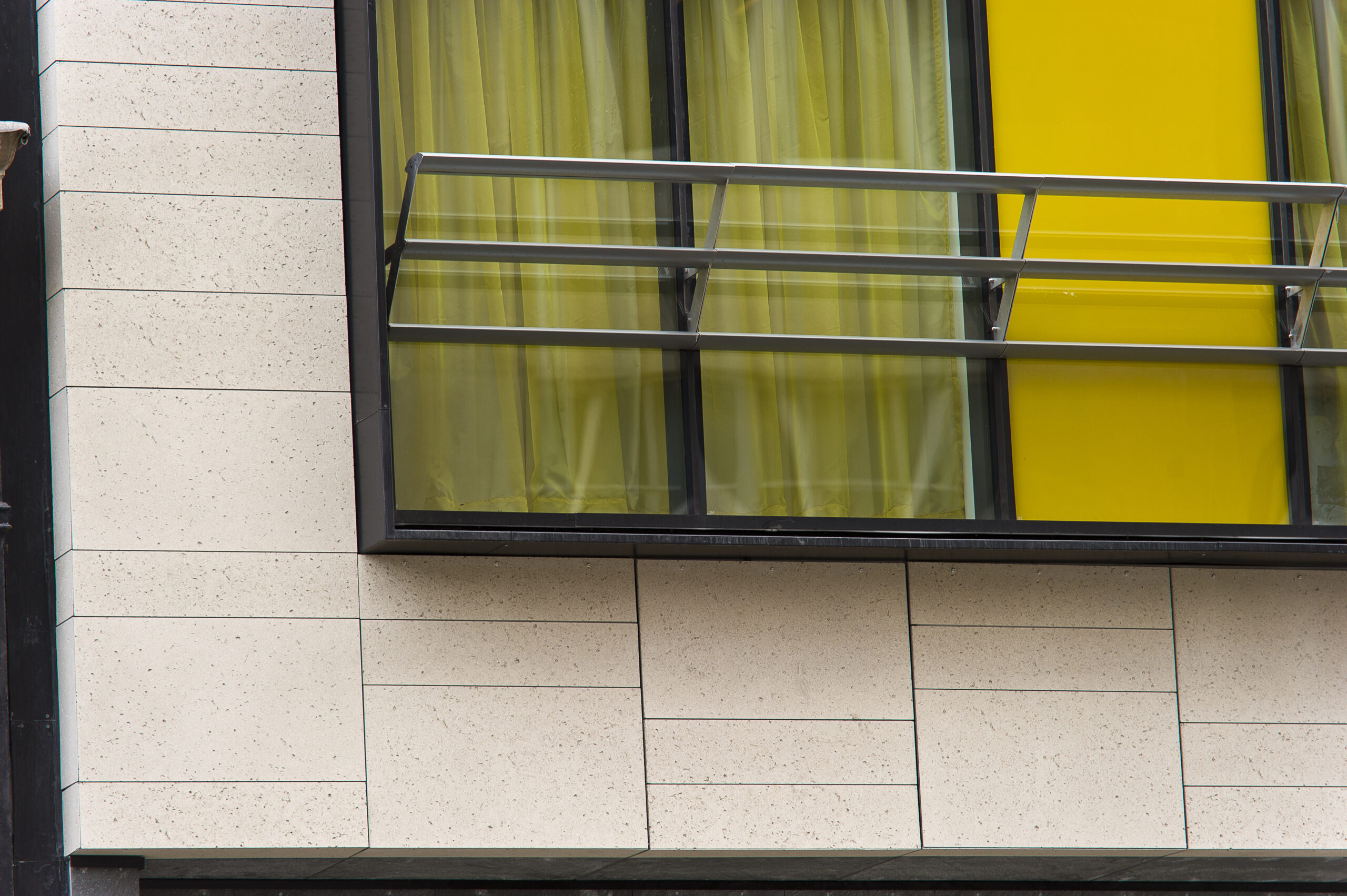 Les couleurs employées, aussi bien à l’extérieur qu’à l’intérieur, ont été spécialement sélectionnées pour rappeler l’histoire du bâtiment, liée au commerce du coton. Avec son jeu entre le minéral et le verre, la façade confère à la réalisation tout le cachet nécessaire à un « boutique hotel » moderne.