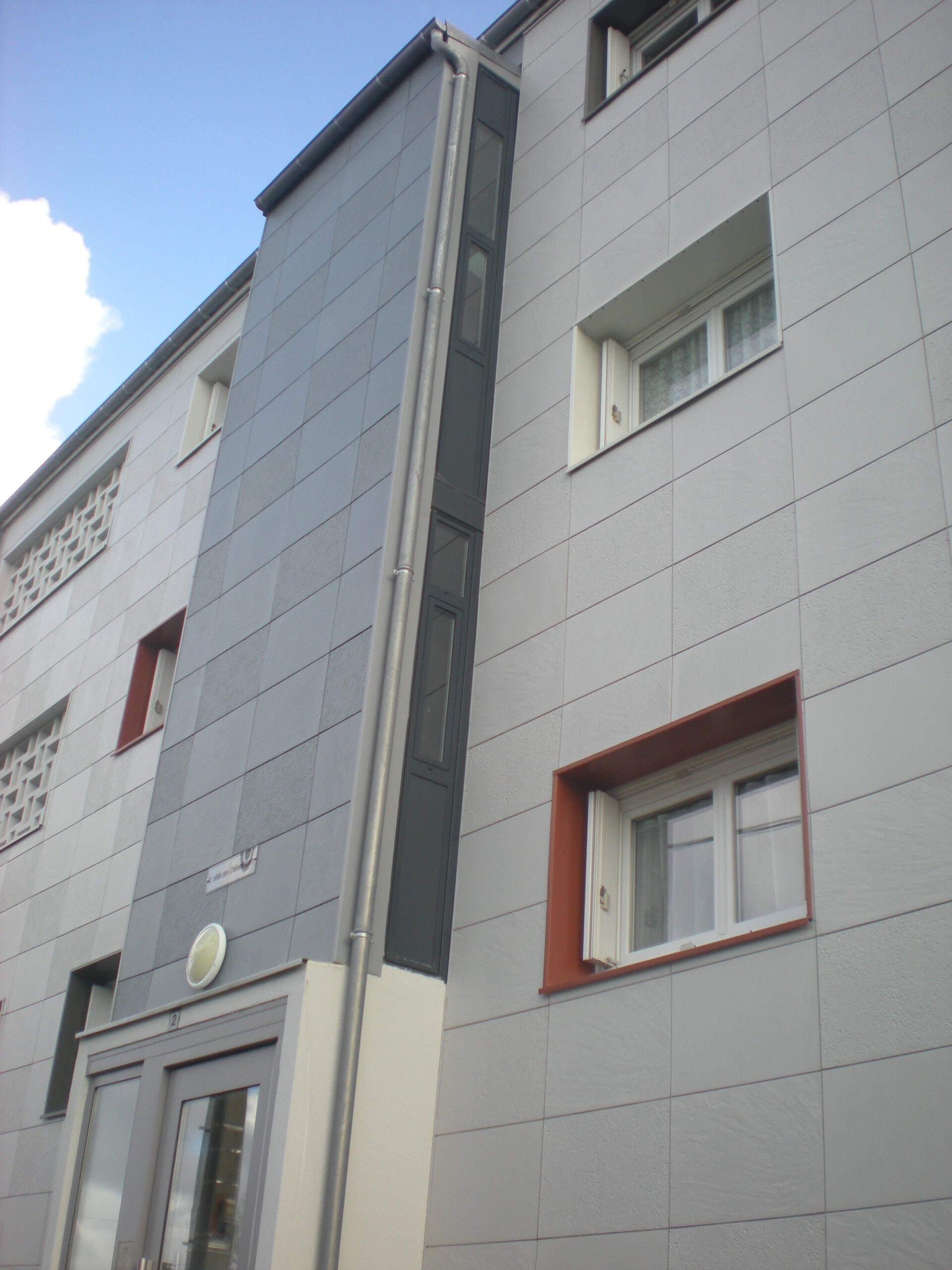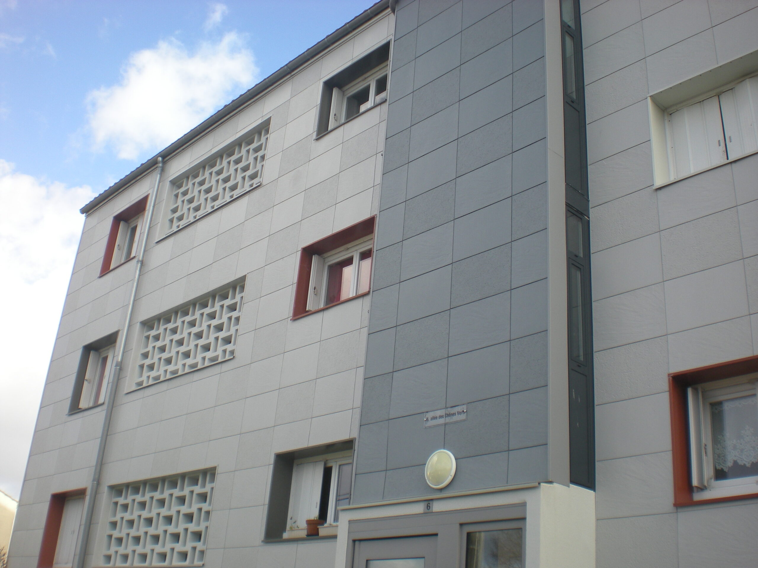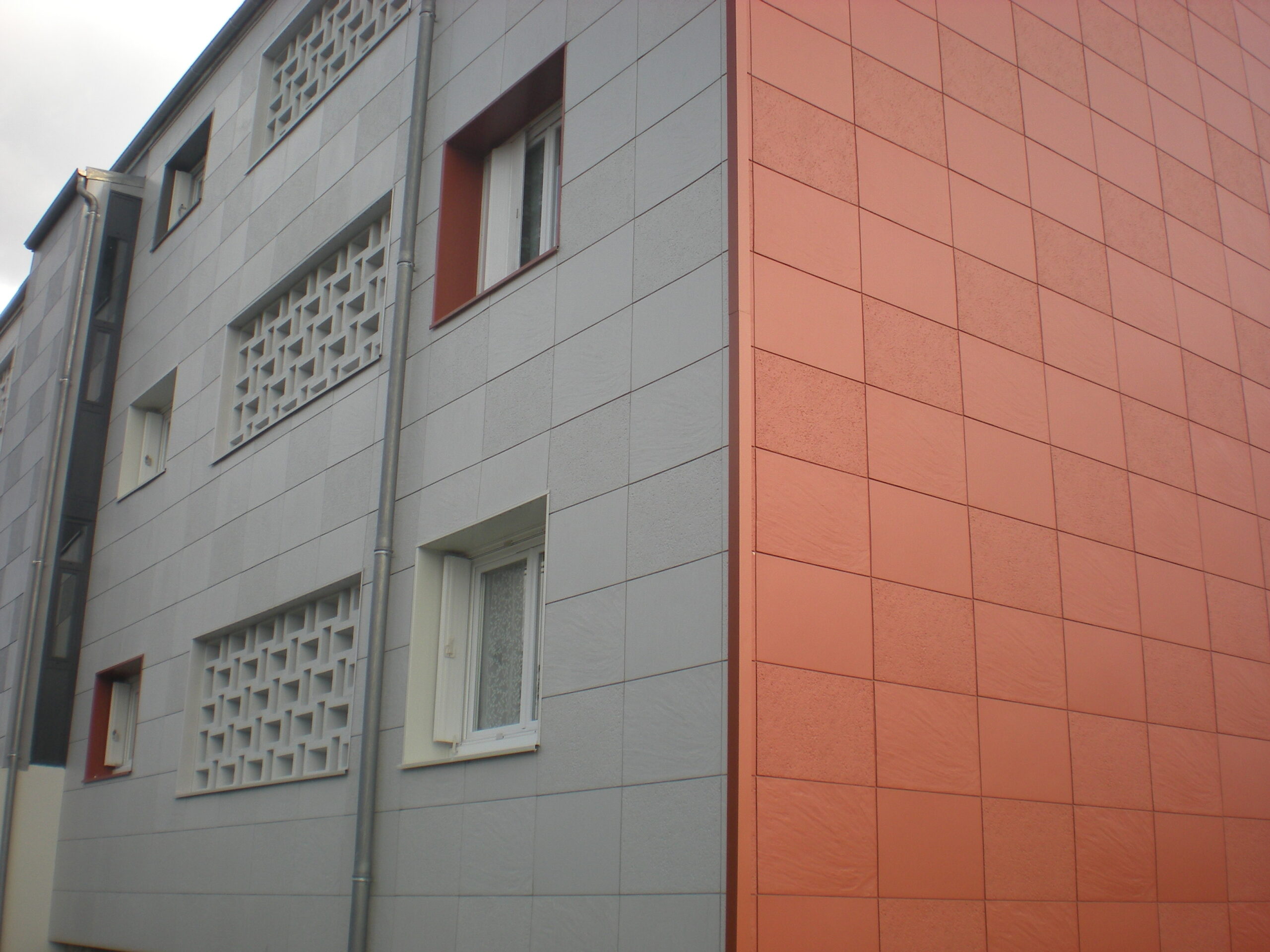 La réhabilitation de la résidence Chaudronne à Cognac a été réalisée avec notre système de bardage sans ossature (BSO) : économique et rapide à mettre en œuvre, ces parements offrent néanmoins un grand choix d’aspects et de coloris. Ici, 3 aspects (LISSE MAT, PIERRE DE LOIRE et PIERRE DU SUD) et autant de coloris ont été employés dans cette réalisation qui joue la carte du minéral !
