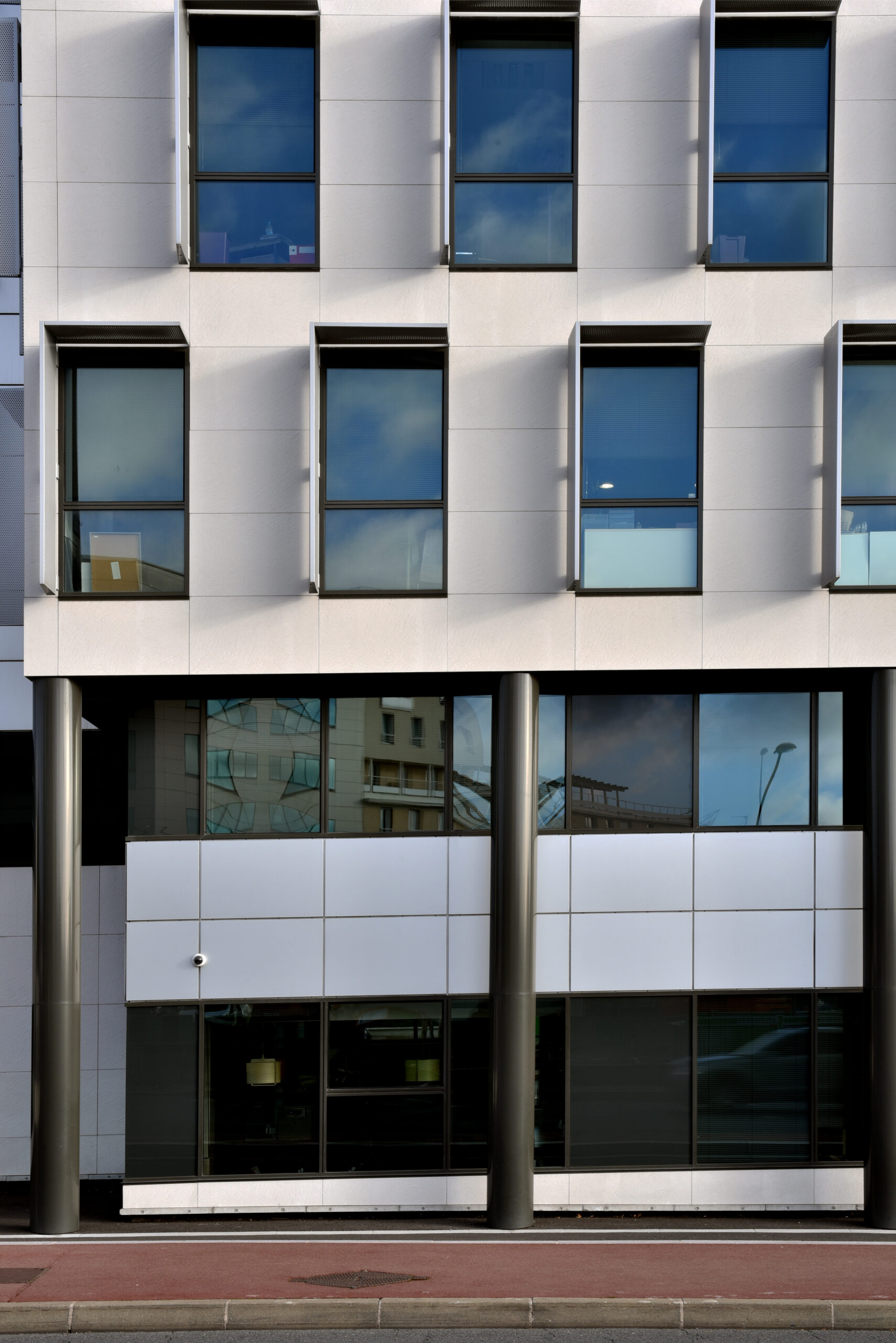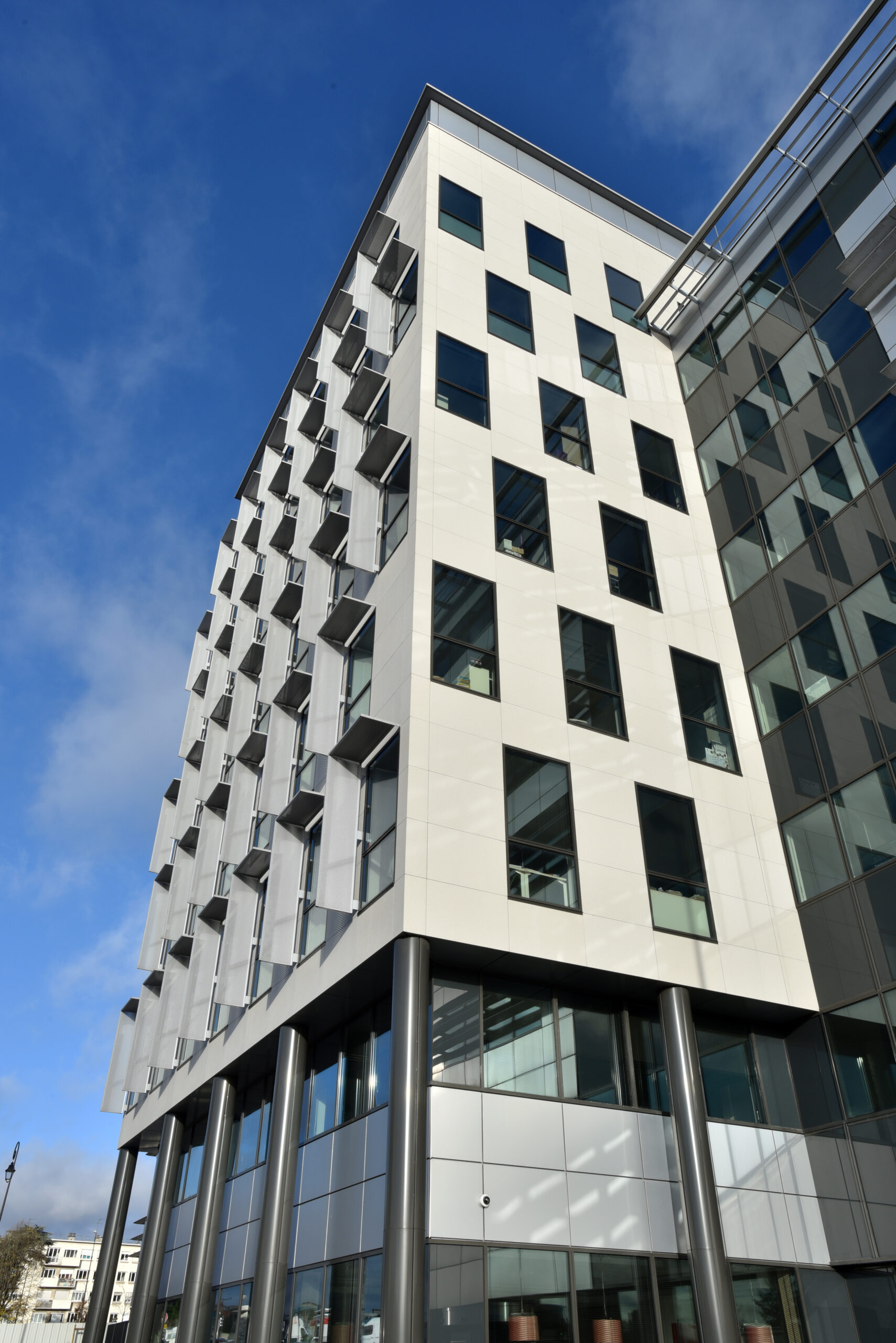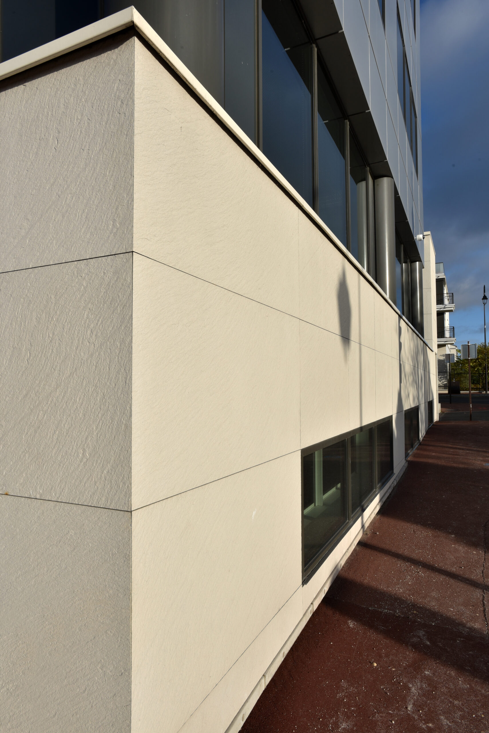 Cet immeuble de bureaux est le siège de la société Pomona, situé à Antony dans les Hauts-de-Seine (92). Notre parement minéral GRANITÉ a ici été employé sur un système de bardage avec ossature (BAO), dans le cadre d’une isolation thermique par l’extérieur (ITE).