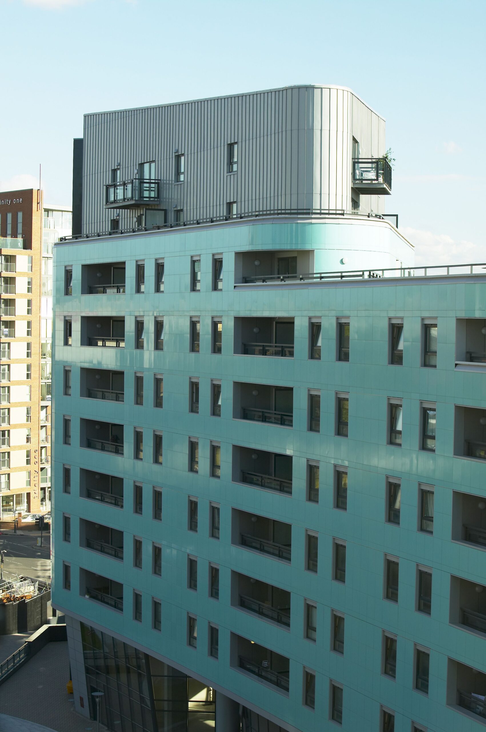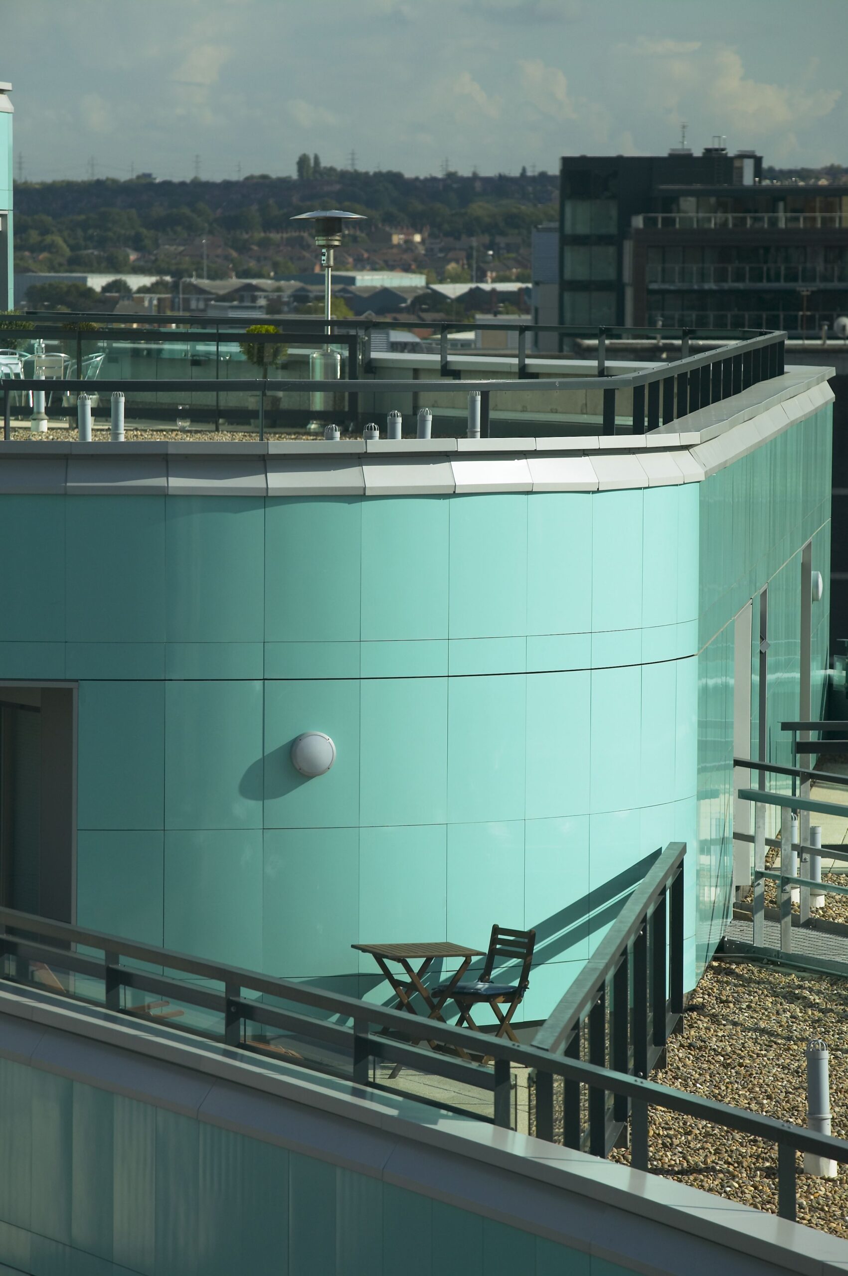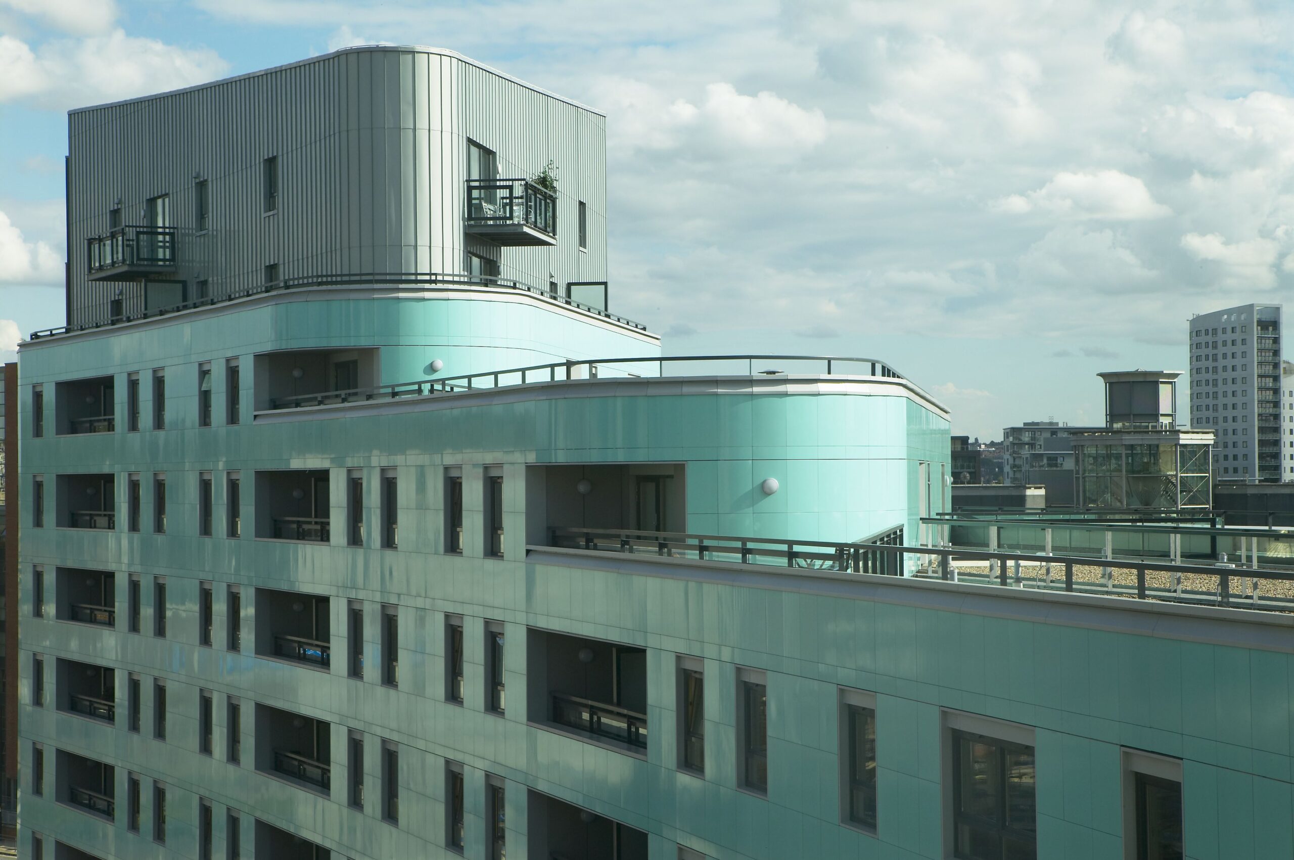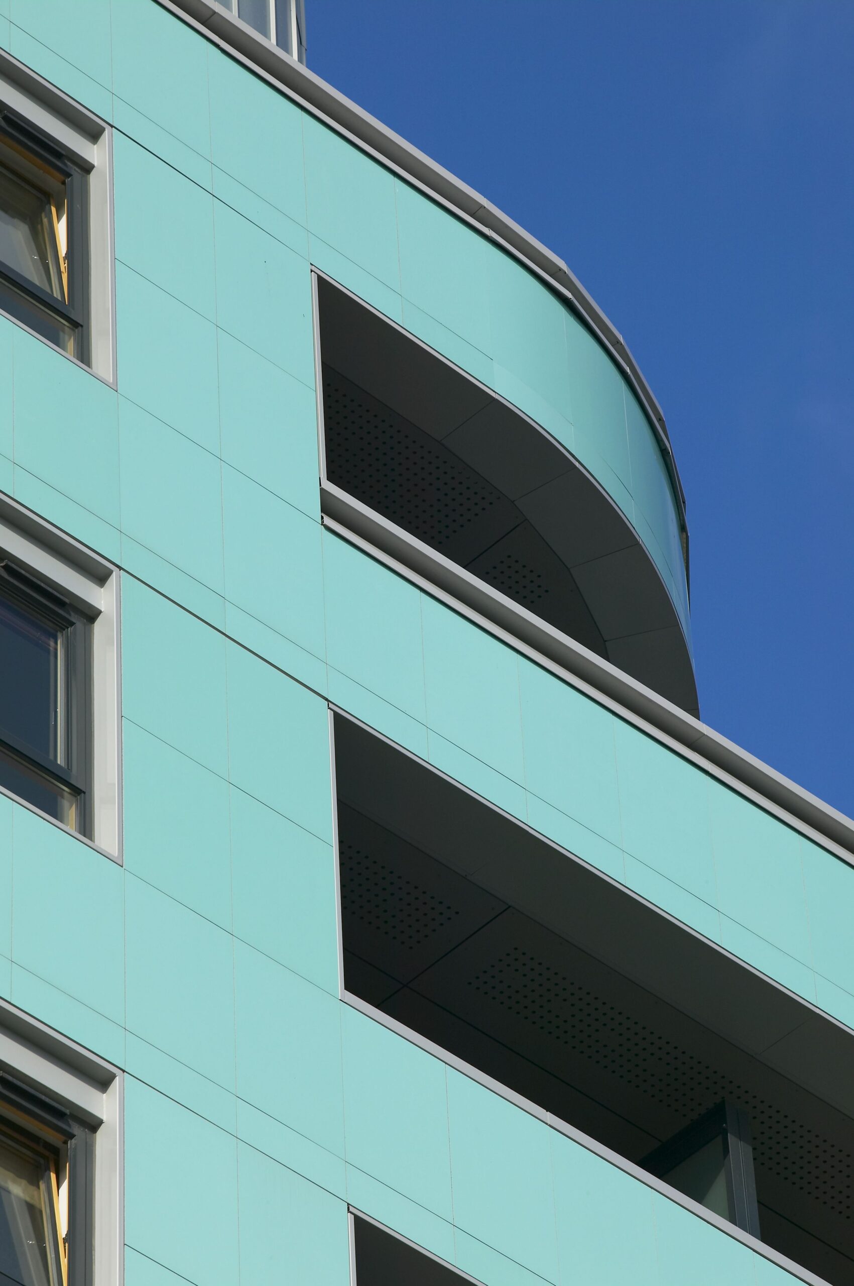 Carea a fourni plus de 5000 m² de bardage, dans un coloris aigue-marine brillant qui s’assortit au cuivre vert du bâtiment.
